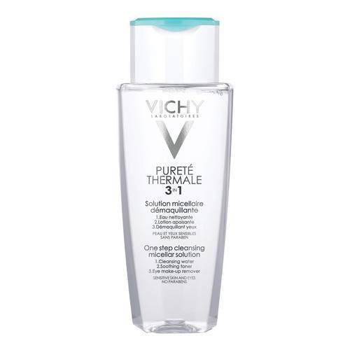 PURETÉ THERMALE 3 IN 1Solution micellaire démaquillante In un solo prodotto: acqua detergente, tonico lenitivo, struccante occhi. Grazie alla sua formula basata su una tecnologia micellare, rispetta la pelle e gli occhi sensibili. Senza alcool. Senza Parabeni. Ipoallergenico. Adatto ad occhi sensibili. Modalità d'uso Applicare con l'aiuto di un batuffolo di cotone. Senza risciacquo. Formato Flacone da 400 ml Cod.M5038401